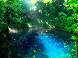 原生的なブナ林が広がる白神山地と十二湖の青池は、作品の神秘的な世界観を生み出しました。